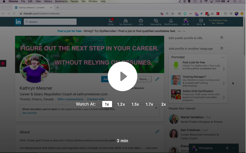 I like to think of myself as your caring, warm-hearted, and action-oriented career coach and job search strategist, ready to support you with tools and accountability, and to stick with you through the entire process–from getting clear on what you want all the way through to negotiating your salary.
